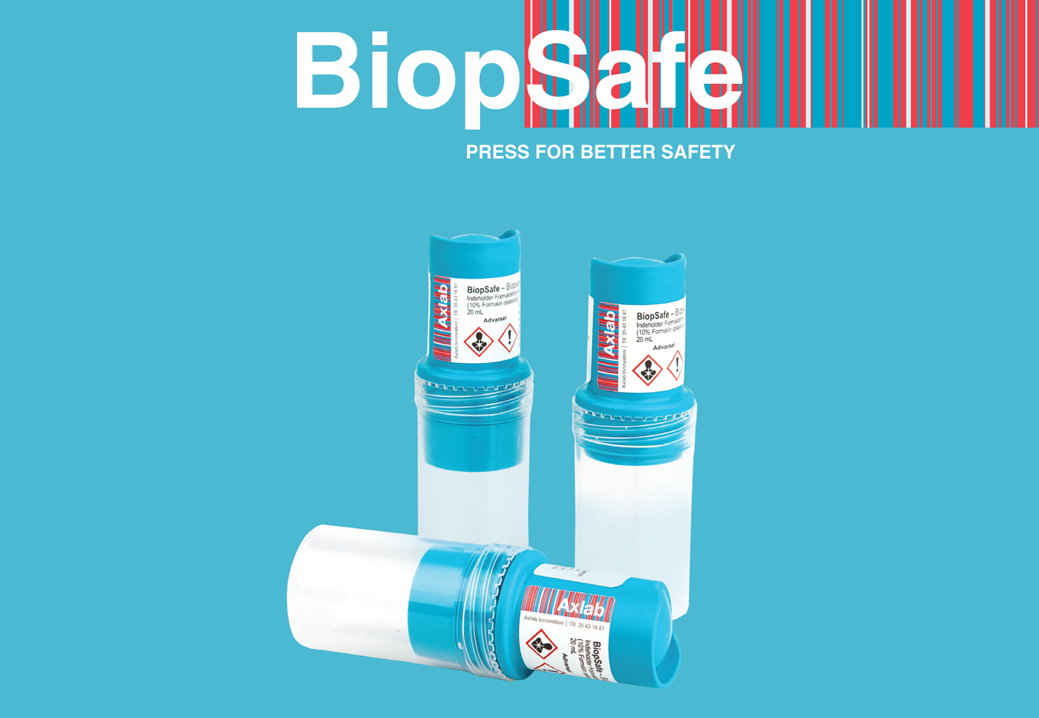 Biopsafe is a Biopsy tool, its main purpose is the overall improvement of the biopsy process. the leak resistant, shatter proof container is complemented by an innovative cap which stores the buffered Formalin solution until its ready to be "pressed" and released for specimen fixation. With and all in one integrated container that protects the practitioners from any exposure to Formaldehyde, Biopsafe is the safest and most efficient way to fixate biological samples in preparation for histological studies.
